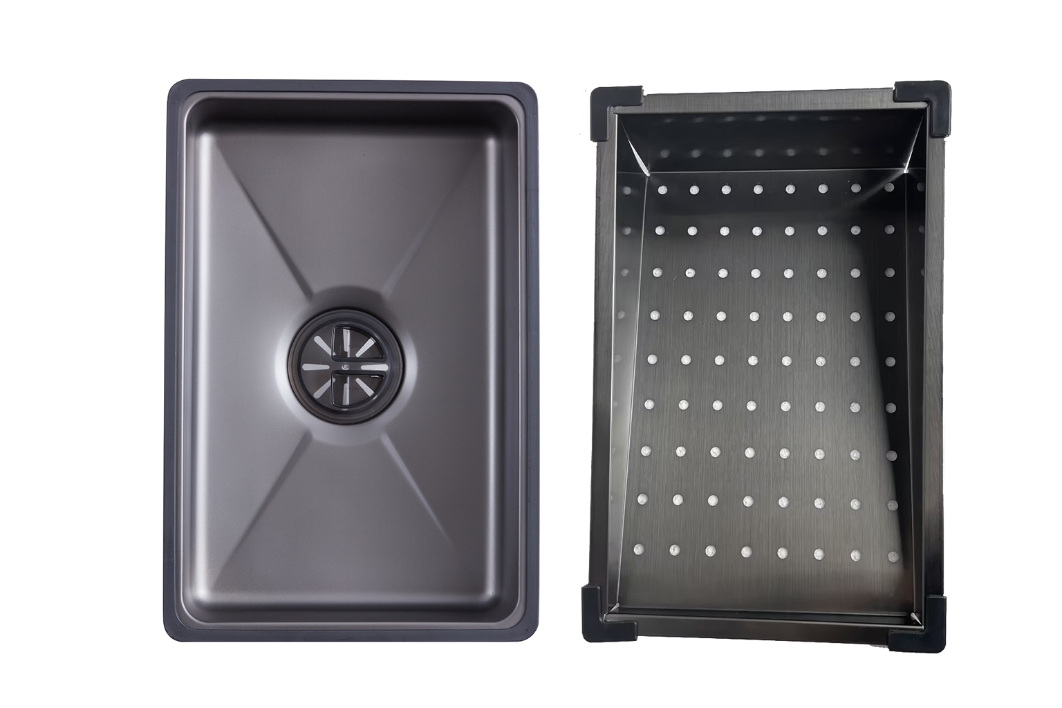 Accesorios pensados para lavar y escurrir sin ocupar la tina principal, manteniendo el área de trabajo más ordenada.