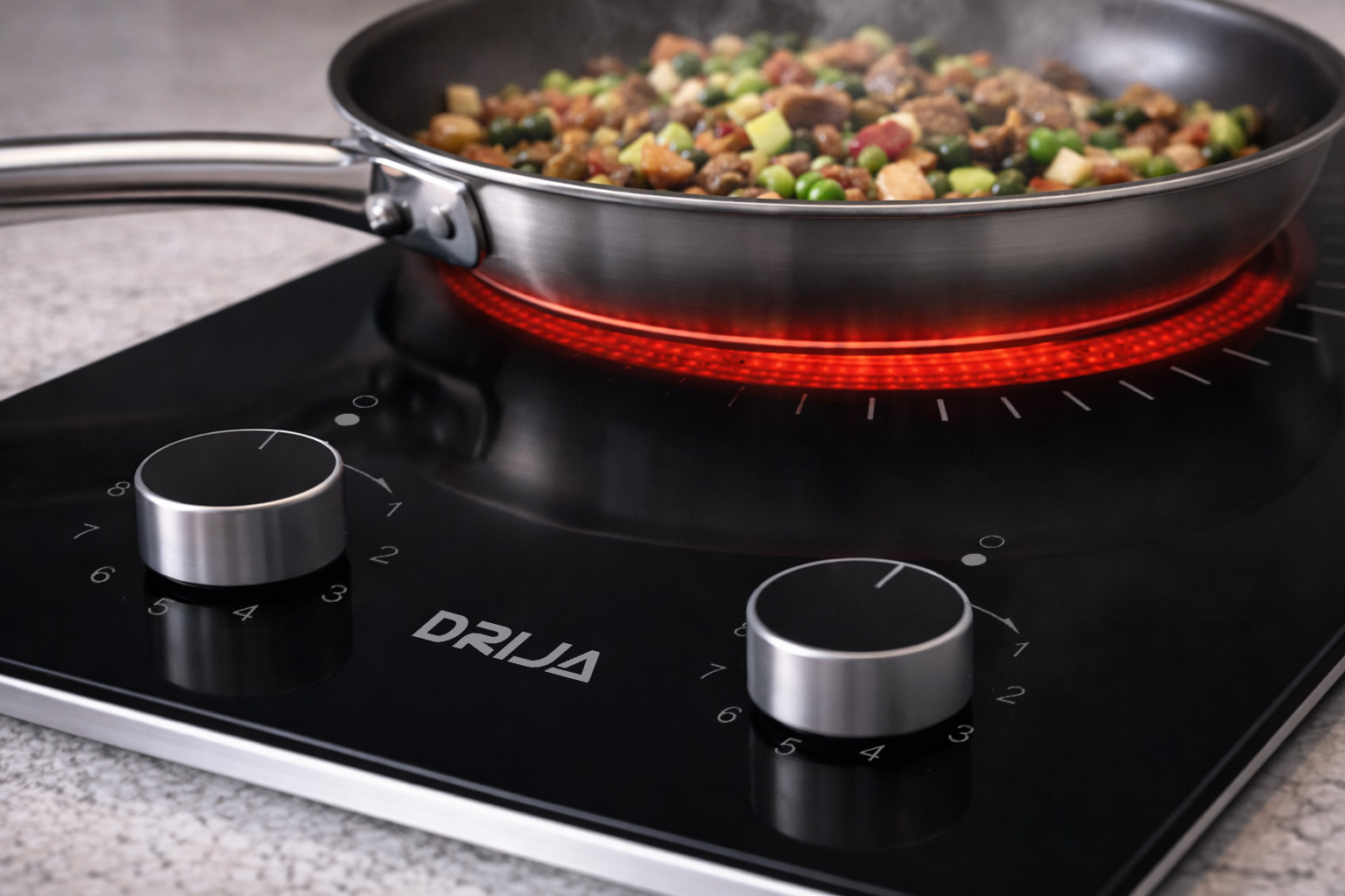 Superficie resistente y elegante que favorece una distribución de calor uniforme, ideal para el uso diario y para mantener una estética minimalista.