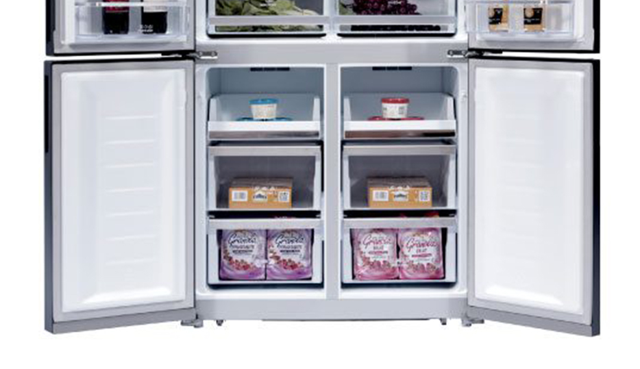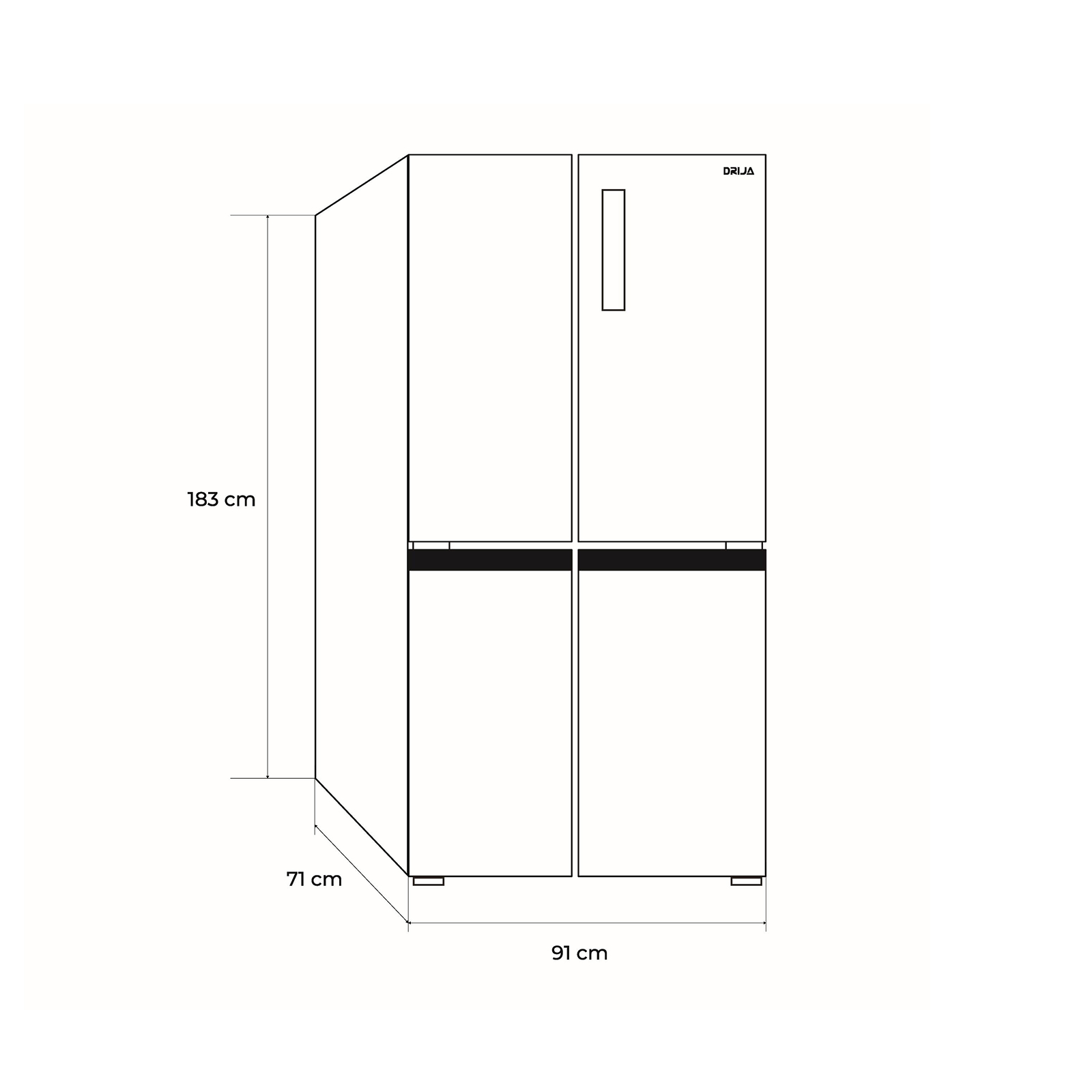 El BLACK-19D4P de DRIJA, con acabado en vidrio templado espejo negro, ofrece una capacidad de 17.9 P³ / 508 L y un diseño French Door con 3 niveles en el congelador para una organización óptima de los alimentos. Su sistema Ultra Fast Cooling garantiza un enfriamiento rápido y eficiente, mientras que las bandejas de vidrio templado y la superficie de fácil limpieza aportan durabilidad y practicidad. Además, cuenta con control de temperatura digital para un ajuste preciso.