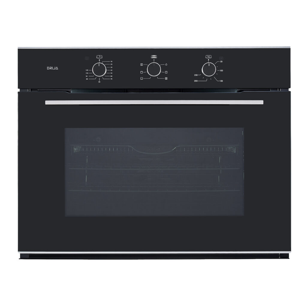 El horno empotrable CARIBE 76 AIR-A combina convección (Fan Convection) y un diseño moderno en esmalte negro con vidrio ahumado, ideal para cocinas que buscan rendimiento y estética en un solo equipo. Su capacidad de 78 L (2.7 ft³) te da espacio real para preparar recetas familiares, mientras su control mecánico por perillas mantiene un manejo simple, directo y confiable.