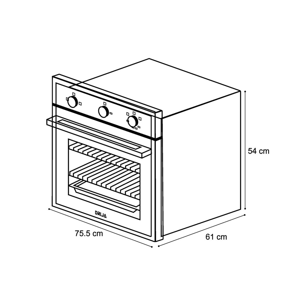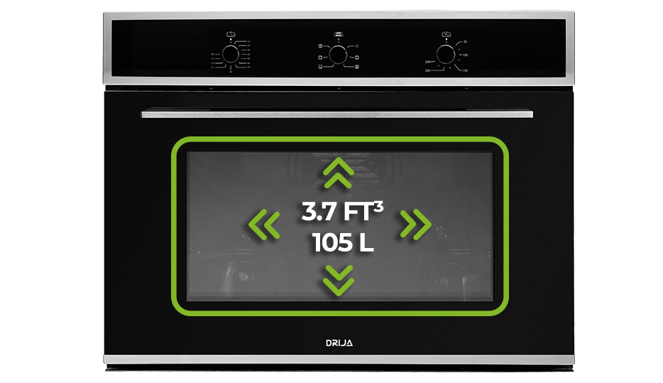 El horno empotrable Caribe 76 Air de DRIJA destaca por su gran capacidad de 105 litros, con un diseño elegante en vidrio negro y potentes funciones para todo tipo de preparaciones. Integra sistema de convección con quemador para lograr una cocción más rápida y uniforme, ideal para familias que cocinan a gran escala. Sus 5 funciones de calentamiento, triple vidrio de seguridad y accesorios especializados como la bandeja para freidora de aire, lo convierten en un aliado versátil, potente y confiable en cualquier cocina moderna.