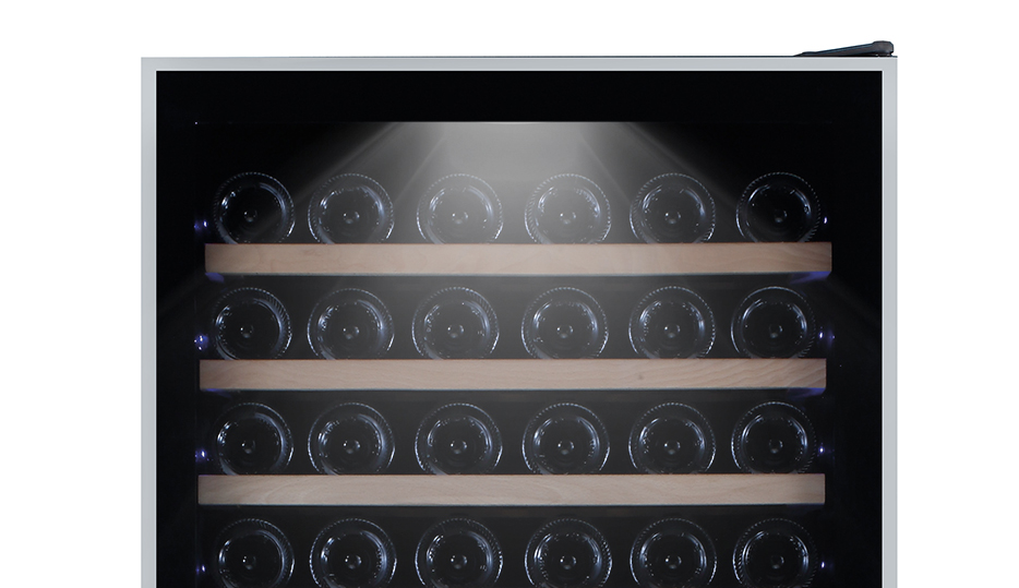 Zonas de temperatura independientes para vinos tintos y blancos (5 °C a 22 °C).