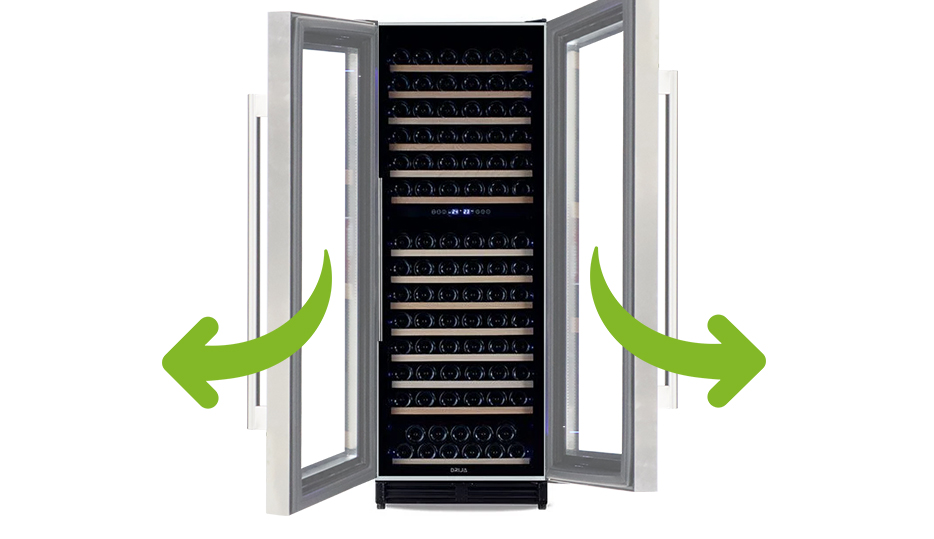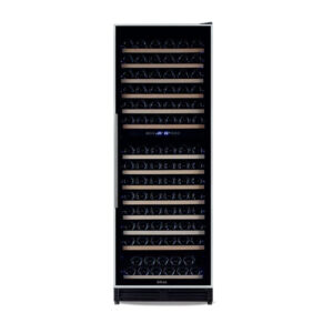 La vinera Chianti 154 de DRIJA es una cava de gran formato, diseñada para verdaderos coleccionistas. Su capacidad para 154 botellas, doble zona de enfriamiento y estantes de madera barnizada permiten organizar tu colección con orden, elegancia y tecnología. Incorpora puerta de acero inoxidable con doble vidrio, iluminación LED blanca, control táctil y sistema de instalación flexible, ideal para empotrar o ubicar de forma independiente.