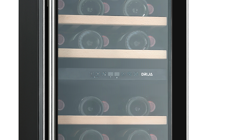 La vinera Chiaretto 31 de DRIJA destaca por su capacidad, diseño compacto y doble zona de temperatura, permitiéndote conservar diferentes tipos de vinos en condiciones ideales. Con estantes deslizables de madera barnizada, iluminación LED azul, control digital y puerta reversible de doble vidrio con acero inoxidable, es perfecta tanto para cocinas modernas como para espacios gourmet. Su eficiencia y elegancia la convierten en una opción completa y sofisticada.