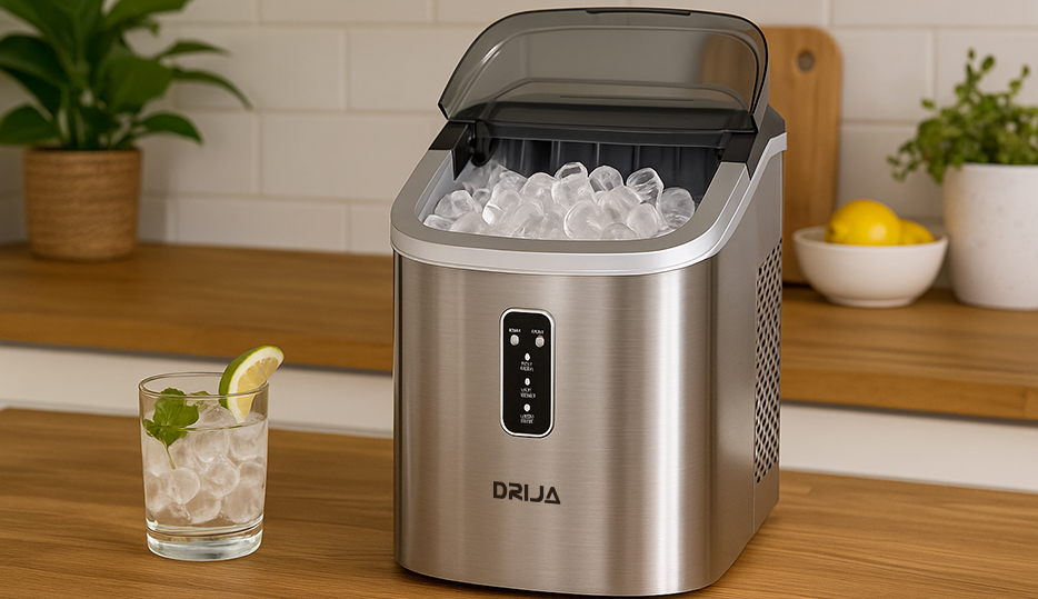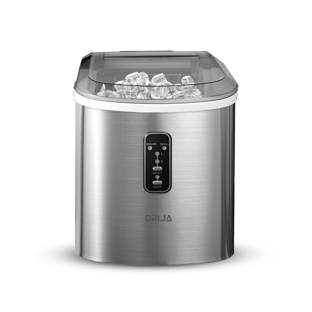 La FH18 INOX de DRIJA es una máquina de hielo portátil con diseño compacto en acero inoxidable, ideal para el hogar, oficinas o eventos. Con capacidad de producción de hasta 18 kg en 24 horas, ofrece dos tamaños de cubos cilíndricos, ciclo rápido de 5 a 11 minutos y sistema de autolimpieza para un mantenimiento sencillo. Su funcionamiento silencioso y panel con indicadores LED garantizan comodidad y practicidad.