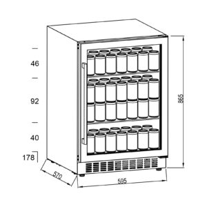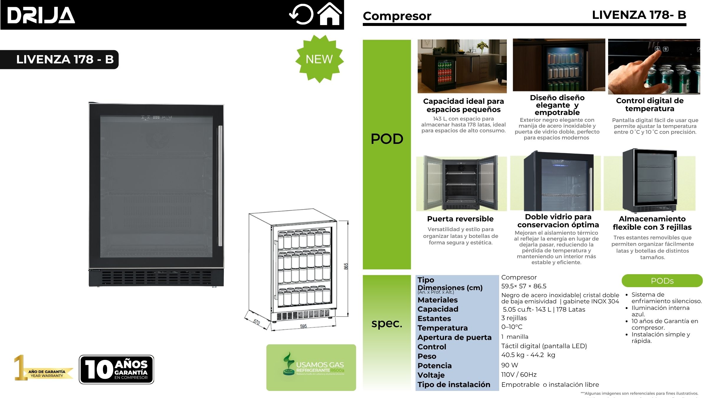 Su estructura eficiente permite almacenar hasta 178 latas, aprovechando al máximo el espacio disponible.