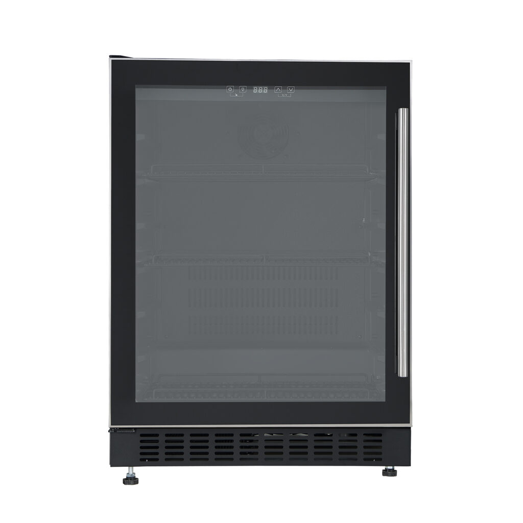 Su acabado negro con manija de acero inoxidable y puerta de vidrio doble garantizan un estilo moderno y una óptima conservación de la temperatura interna.
