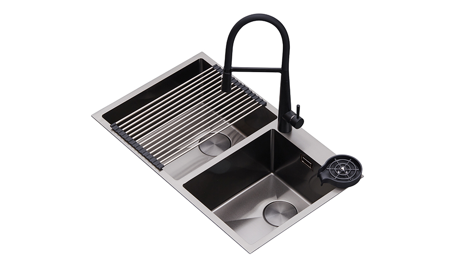 | Rejilla y tapa escurridora de acero | Grifería extraíble de alto flujo |