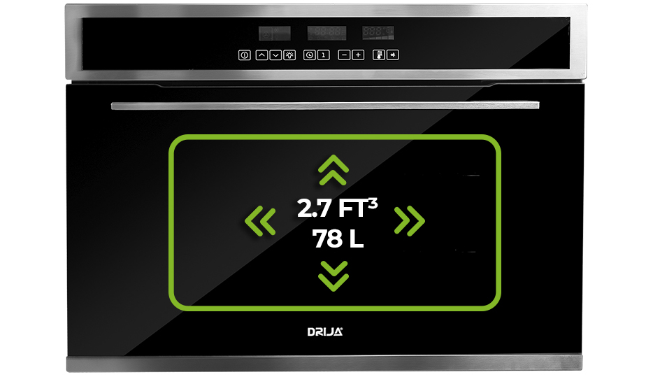 El horno empotrable Pacific 76 Air de DRIJA combina diseño moderno, panel digital y 8 funciones de calentamiento para una experiencia de cocción precisa y cómoda. Su sistema de convección con quemador garantiza acabados dorados en menos tiempo, mientras que su puerta de triple vidrio y temporizador integrado aportan seguridad y control. Con 78 litros de capacidad útil, accesorios versátiles y materiales de alta calidad, es ideal para cocinas familiares que requieren potencia y elegancia diaria.