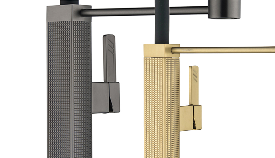 Disponible en dorado cepillado y negro mate, ideales para cocinas modernas de alto estándar.