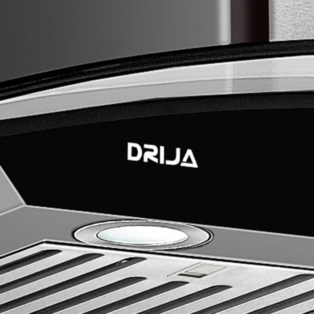 Campana extractora tipo isla de 90 cm con diseño elegante y curvo. Equipada con panel digital, filtro de carbón, sistema de filtración múltiple y 4 luces LED. Ideal para espacios abiertos, con extracción potente y silenciosa.