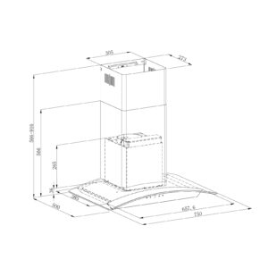 Campana decorativa de 76 cm con diseño curvo en acero y vidrio templado. Equipada con panel digital, triple filtración y alta eficiencia de extracción, ideal para cocinas modernas y funcionales.