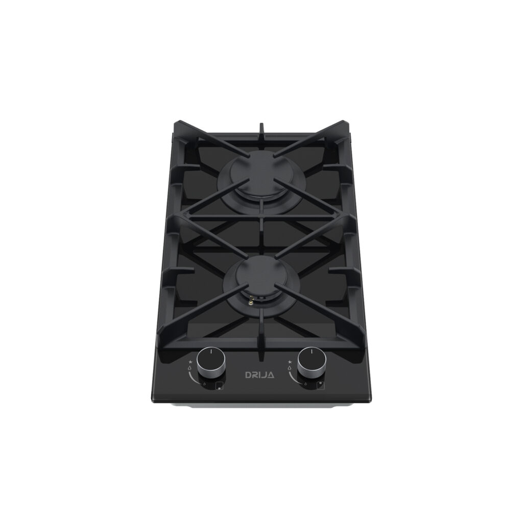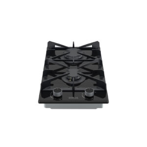 Estufa compacta de 30 cm con superficie de vidrio templado negro, ideal para cocinas pequeñas. Incorpora quemadores SABAF de alta eficiencia, parrillas robustas de hierro colado y encendido eléctrico integrado.