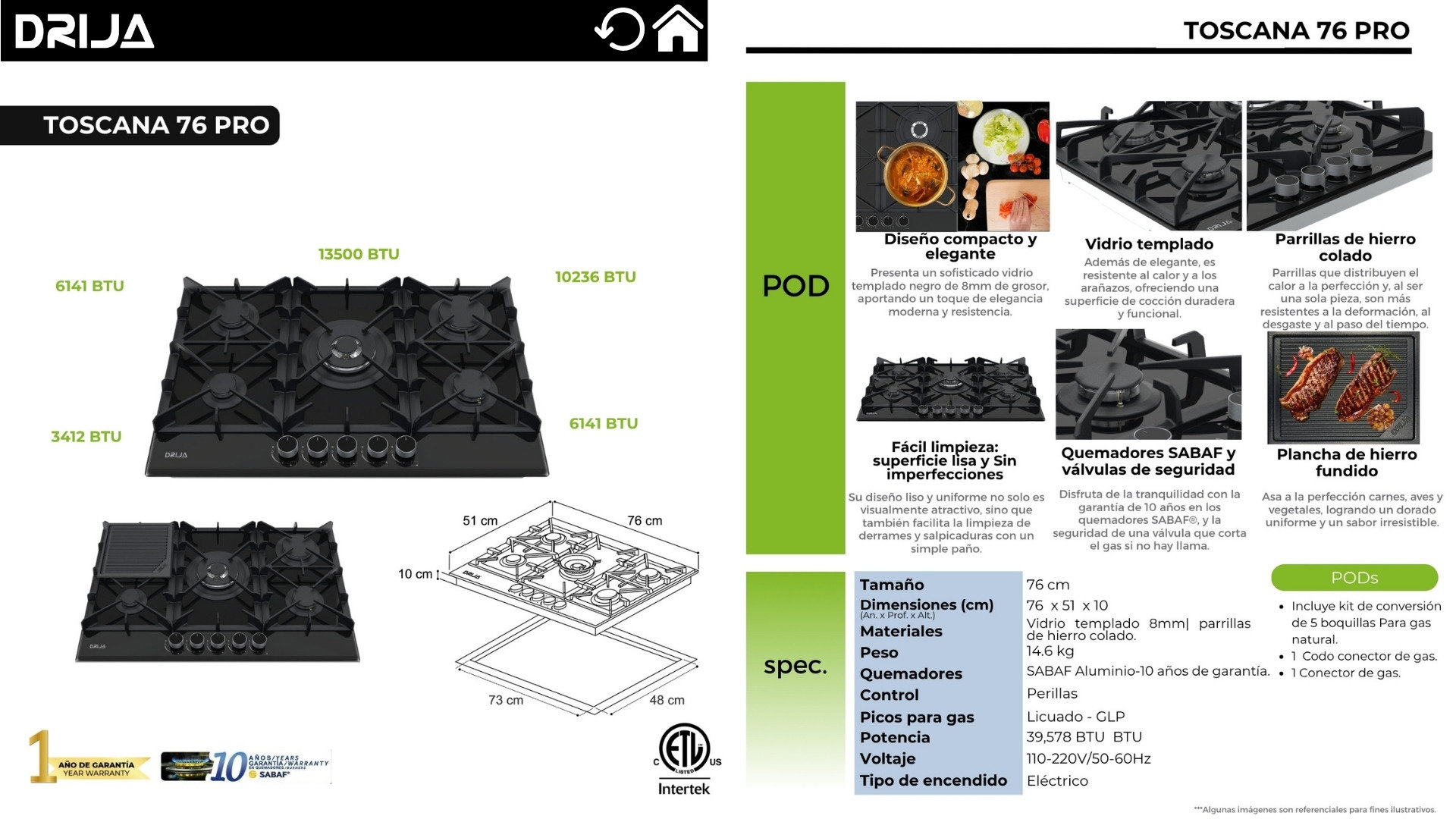 | Quemadores | SABAF Aluminio – 10 años de garantía |