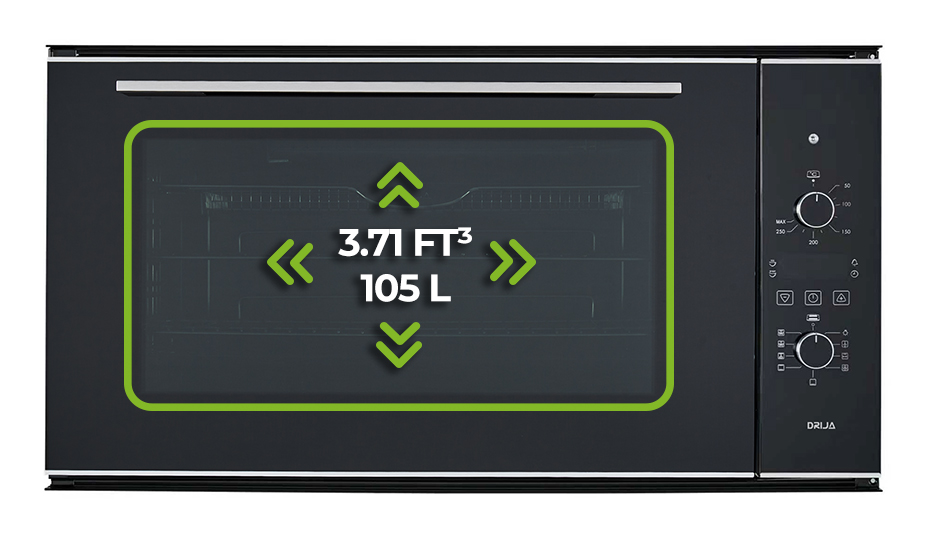 105 L (3.71 ft³) para recetas grandes sin preocuparte por el espacio.