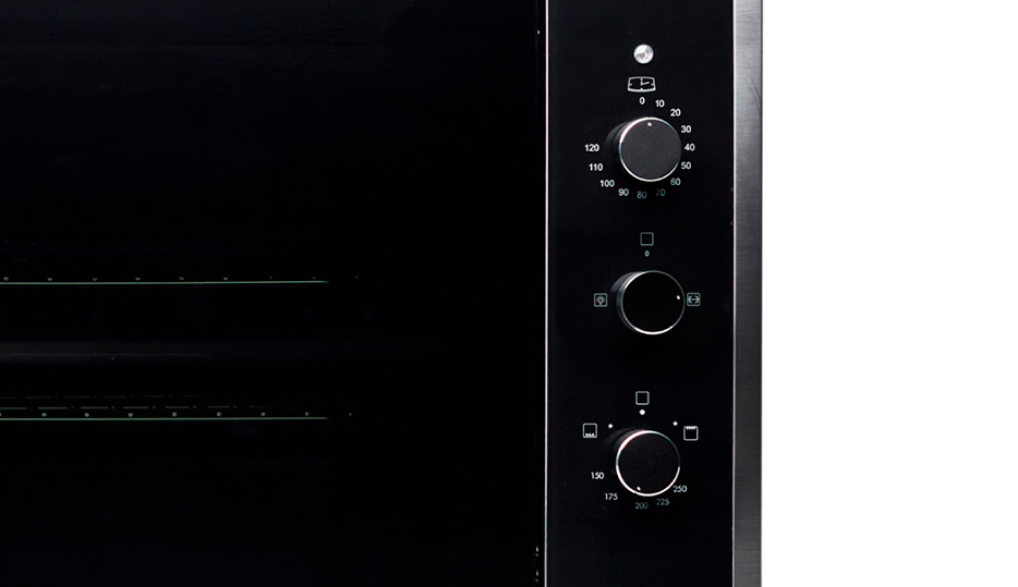 Construcción en acero inoxidable 304 y vidrio negro que combina elegancia con resistencia. El esmalte interno facilita la limpieza y prolonga la vida útil del horno.