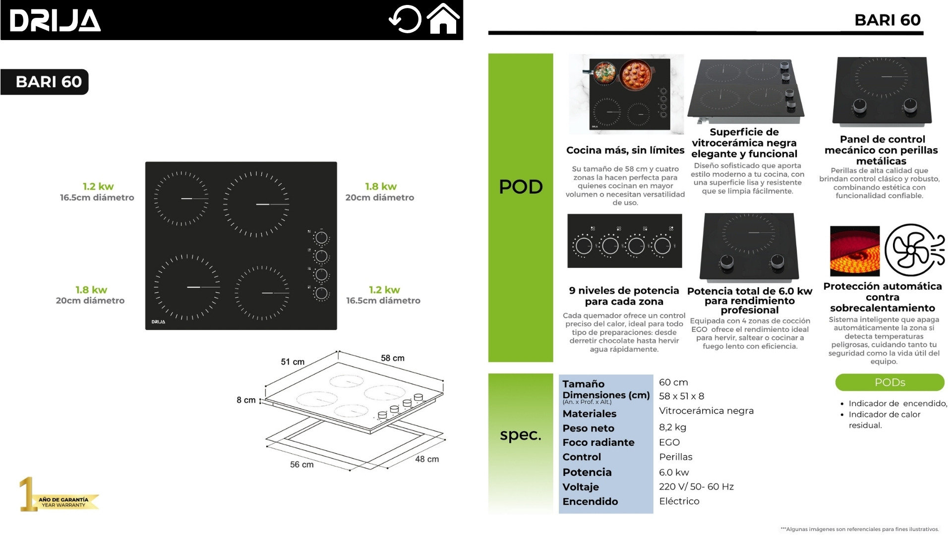 Cocina con confianza sabiendo que cuentas con nuestro completo respaldo y una sólida garantía de 1 año, asegurando tu satisfacción y el óptimo funcionamiento de tu producto.