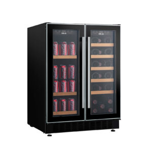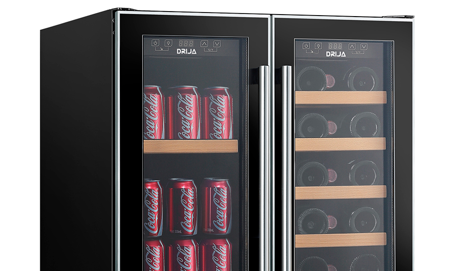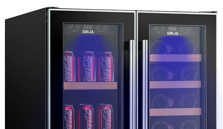 La vinera doble BERE 20 de DRIJA ofrece diseño, tecnología y capacidad superior para quienes buscan conservar y exhibir su colección con estilo. Equipada con compresor inverter de alta eficiencia, cuenta con doble zona de temperatura independiente, iluminación LED azul y estantes combinados de madera y alambre. Su estructura empotrable y elegante puerta de vidrio doble con acero inoxidable la hacen ideal para cocinas modernas, barras gourmet u oficinas.