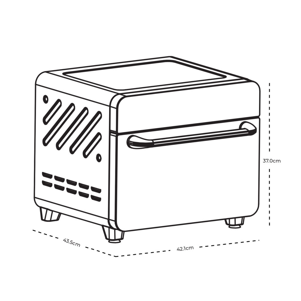 El BRUSCHETTA 25L-B de DRIJA es un horno freidora de aire compacto con capacidad de 25 L (0.88 cu ft), ideal para espacios pequeños sin renunciar a la versatilidad. Incorpora 12 funciones automáticas, cocción 360° para resultados homogéneos, rango de temperatura de 30 °C a 230 °C, y panel digital táctil para un control preciso. Su cavidad de acero galvanizado con puerta de doble vidrio optimiza la retención de calor. Incluye bandeja de hornear, cesta Air Fryer, y rejilla con asa para manejarla con seguridad.