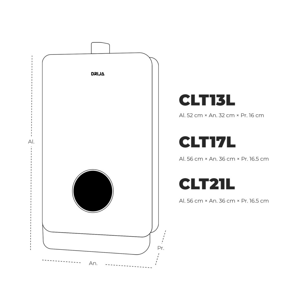 Los calentadores de agua a gas DRIJA modelos CLT13L, CLT17L y CLT21L ofrecen un diseño moderno y funcional con pantalla LED táctil para control de temperatura. Incorporan encendido eléctrico automático, detector de fallos de llama y temperatura constante para un uso seguro y cómodo. Su sistema de flujo de agua ajustable permite atender múltiples puntos de consumo, garantizando agua caliente inmediata con máxima eficiencia y ahorro energético.