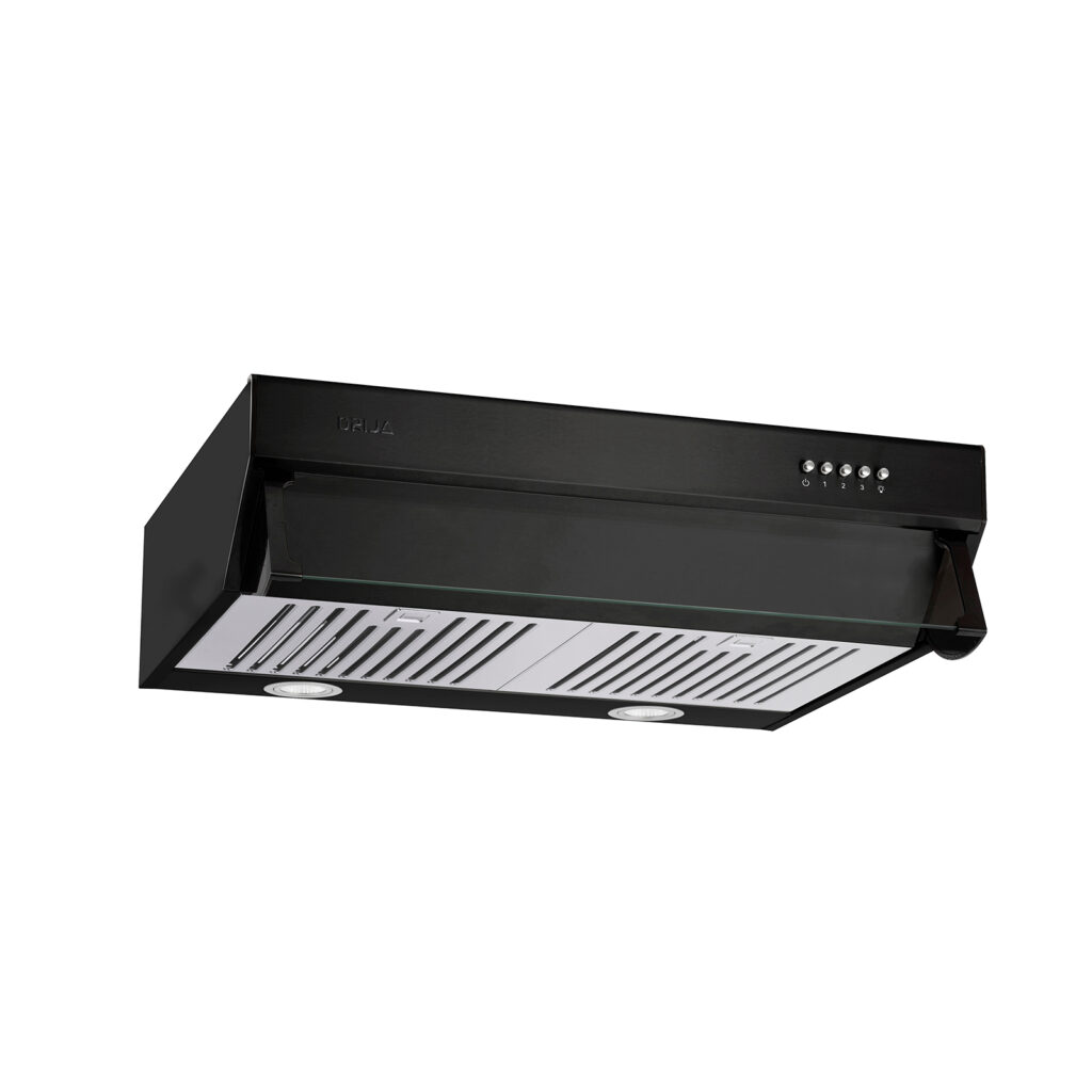 Campana extractora de montaje en pared, con diseño compacto de 60 cm, cuerpo de acero con frente en vidrio. Ofrece alta capacidad de extracción, bajo nivel de ruido y sistema de filtrado doble (carbón activo + acero inoxidable).