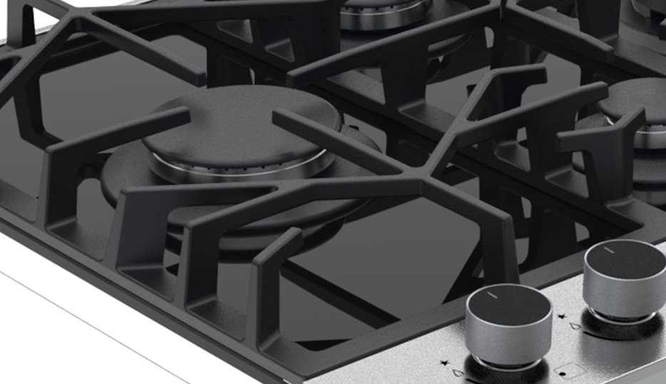 La superficie de acero inoxidable cepillado es elegante, fácil de limpiar y resistente al desgaste. Las parrillas de hierro colado en color negro mate aportan un toque industrial sólido y atractivo.