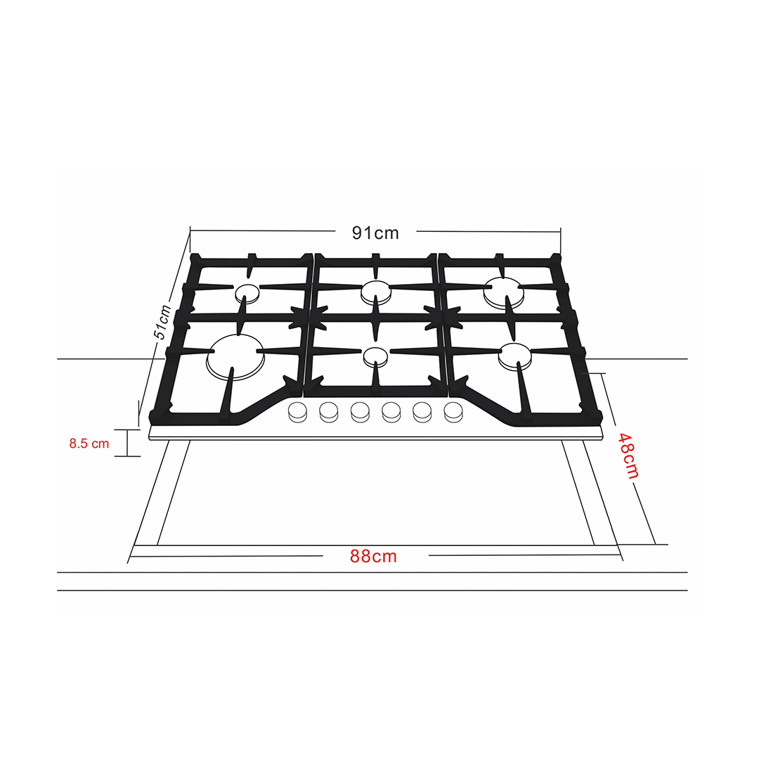 La estufa empotrable Milan 91 de DRIJA redefine la potencia y precisión en la cocina. Equipada con 6 quemadores de alto desempeño, incluye una plancha de hierro fundido ideal para asar carnes, vegetales y más. Sus parrillas continuas de hierro colado, perillas de lujo y sistema SABAF® con válvulas de seguridad, garantizan durabilidad, control y confianza total al cocinar. Perfecta para cocinas modernas que buscan funcionalidad profesional sin sacrificar diseño.