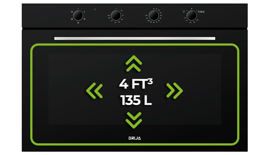 Con 135 L (4.8 pies³), este horno es ideal para familias grandes o cocinas profesionales que necesitan espacio sin restricciones.