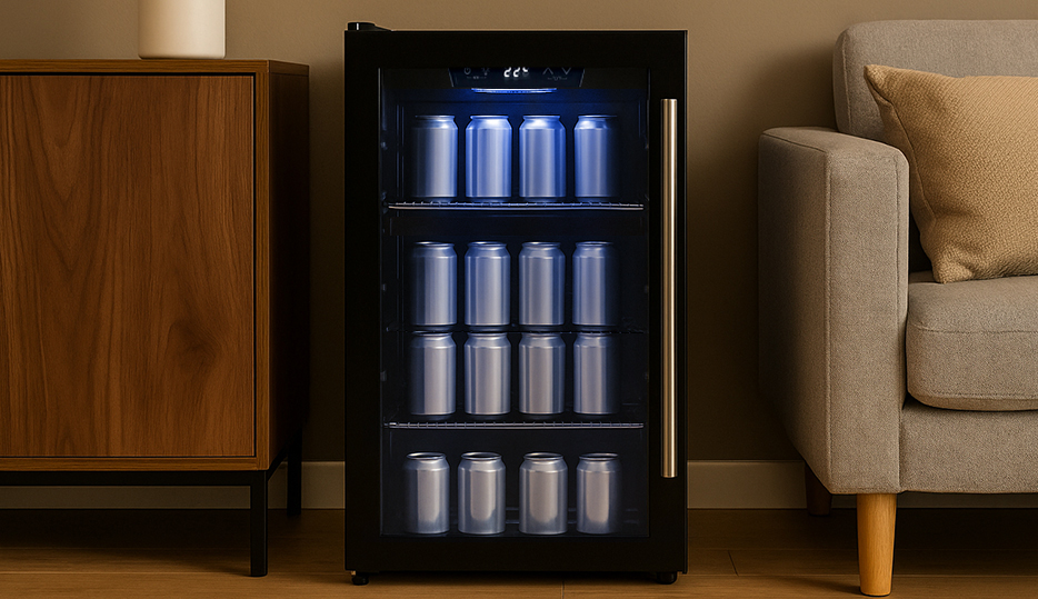 Con 85 litros de capacidad, permite almacenar hasta 70 latas, manteniendo una temperatura estable entre 0 °C y 10 °C gracias a su sistema de enfriamiento por compresor.