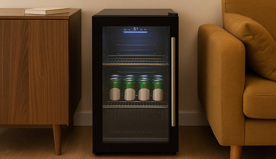 Diseño compacto con gran capacidad interna para almacenar hasta 70 latas o 85 L, perfecto para departamentos, oficinas o áreas sociales.