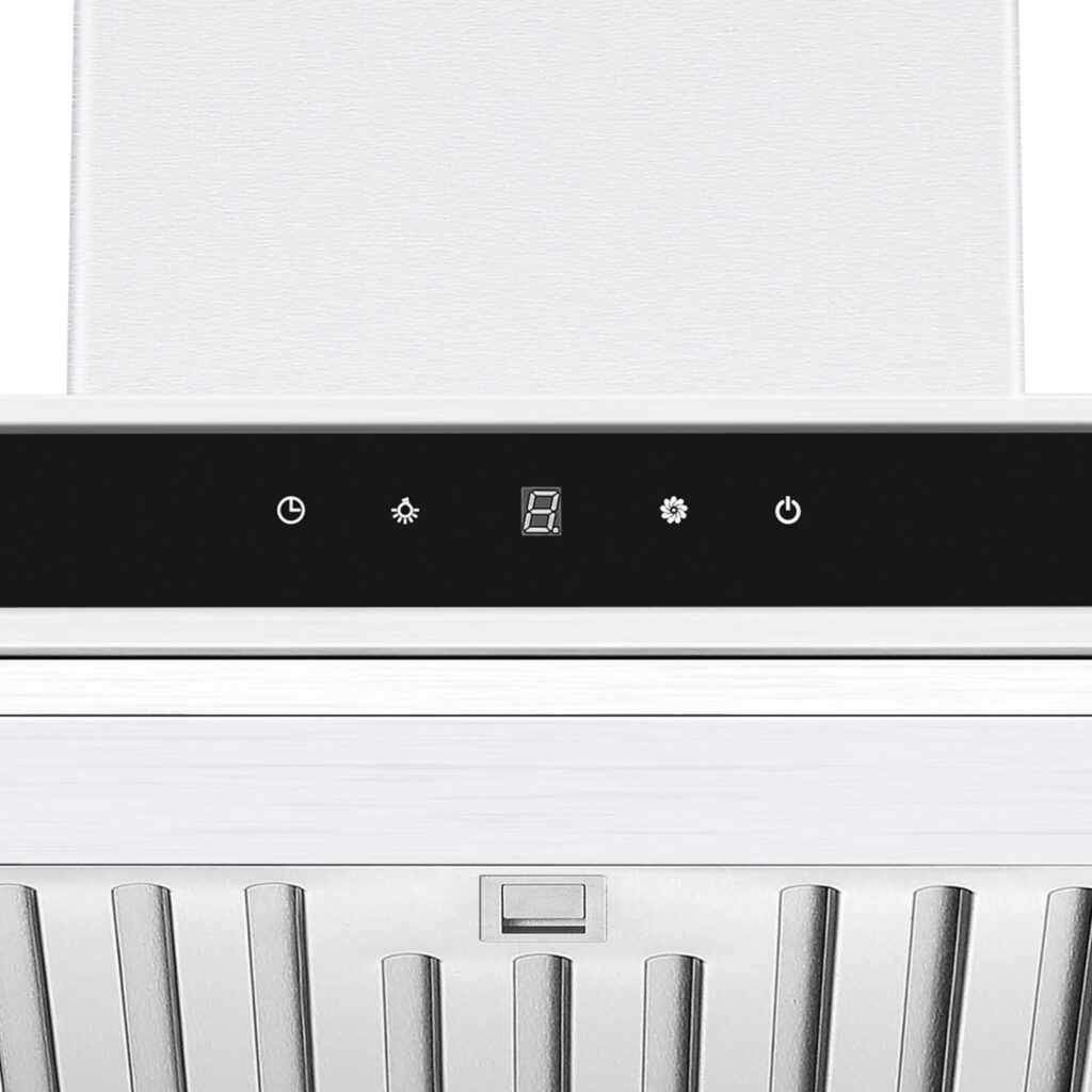 Luce una cocina vanguardista con la campana extractora QUADRATO 76 de 76 cm. Su impecable acabado en acero inoxidable y elegante panel frontal de vidrio aportan un toque de modernidad y sofisticación. Disfruta de su control digital, temporizador, doble filtración y brillantes luces LED, diseñados para un rendimiento superior y un estilo inigualable.