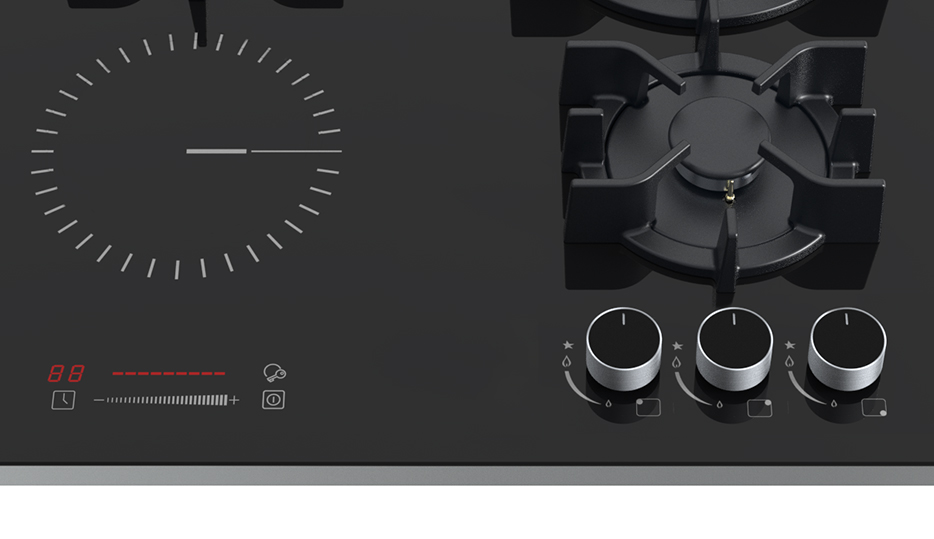 Ideal para cocinar con diferentes intensidades gracias a su quemador triple corona, semi-rápido y auxiliar.