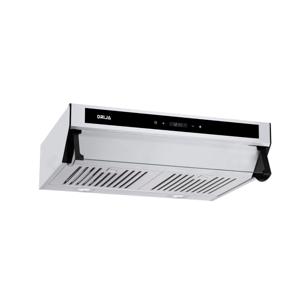 Campana extractora de 60 cm con panel digital táctil, diseño delgado y elegante. Cuenta con temporizador programable, 3 velocidades, bajo nivel de ruido y sistema de filtrado doble con acero y carbón activo.