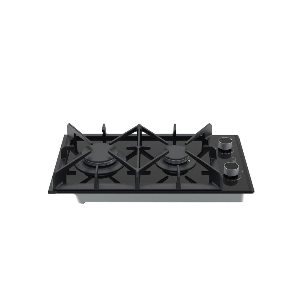 Estufa compacta de 30 cm con superficie de vidrio templado negro, ideal para cocinas pequeñas. Incorpora quemadores SABAF de alta eficiencia, parrillas robustas de hierro colado y encendido eléctrico integrado.