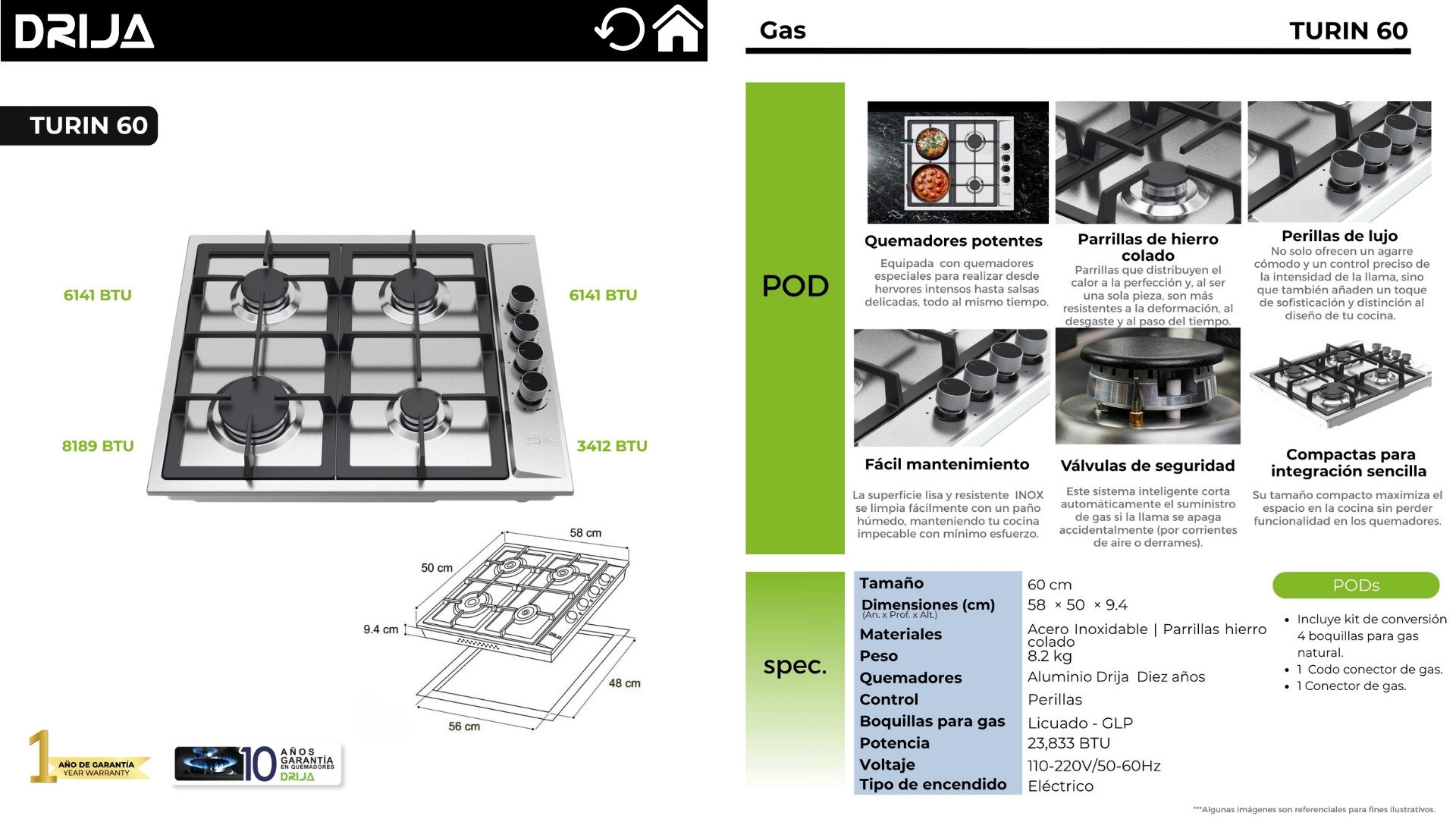 | Quemadores | Drija – 10 años de garantía |